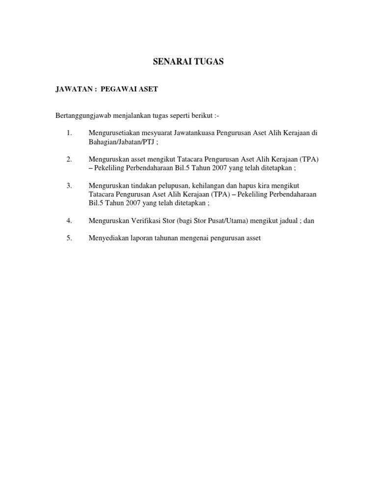 Senarai Tugas Pegawai Aset Pegawai Pemeriksa Hm In Pdf